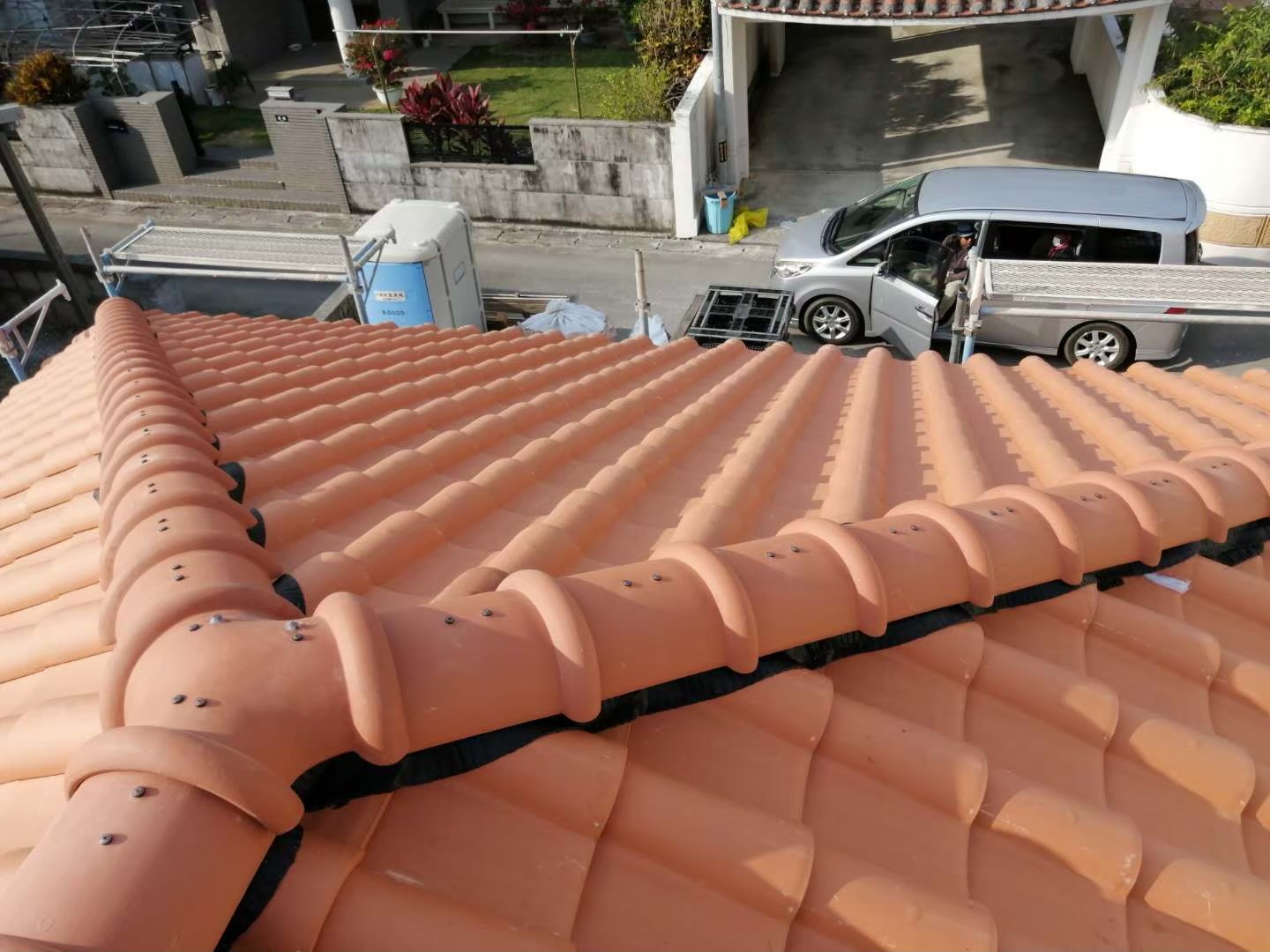 少し色味がわかりにくいですが、ピーチ×イエローで単色の沖縄らしい瓦屋根とはまた違い、ちょっと欧風な感じがオシャレなT様ご夫妻らしくて、完成が楽しみです★