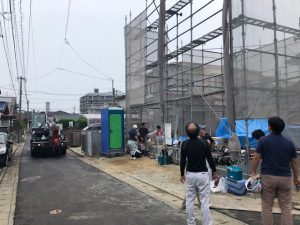 朝7時45分に、お施主様も着て頂い、ご挨拶、四方払い、工事安全を祈願し着工です。