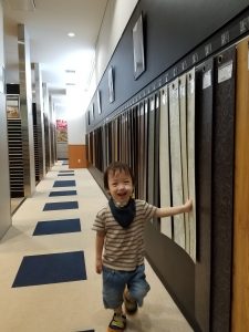 ご主人、奥様が柄選びしている間、御子さんは楽しそうにショールーム内を探検だ!