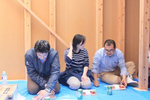 大工さんたちも、カメラが向くと決死の笑顔!!大工さんご協力ありがとうございました(笑)