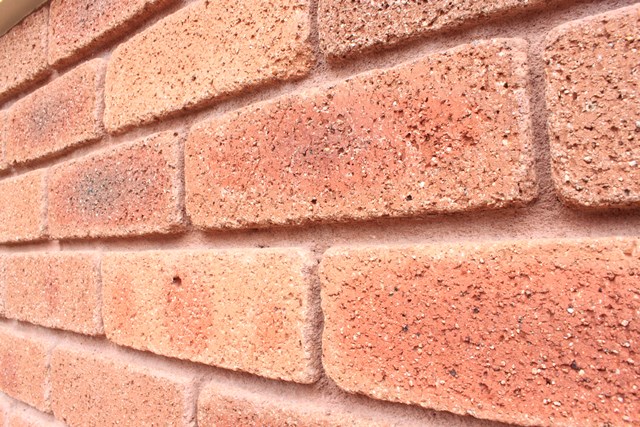 目地のブリックモルタルも特注色でレンガのピンク色に合わせて色調合しています。