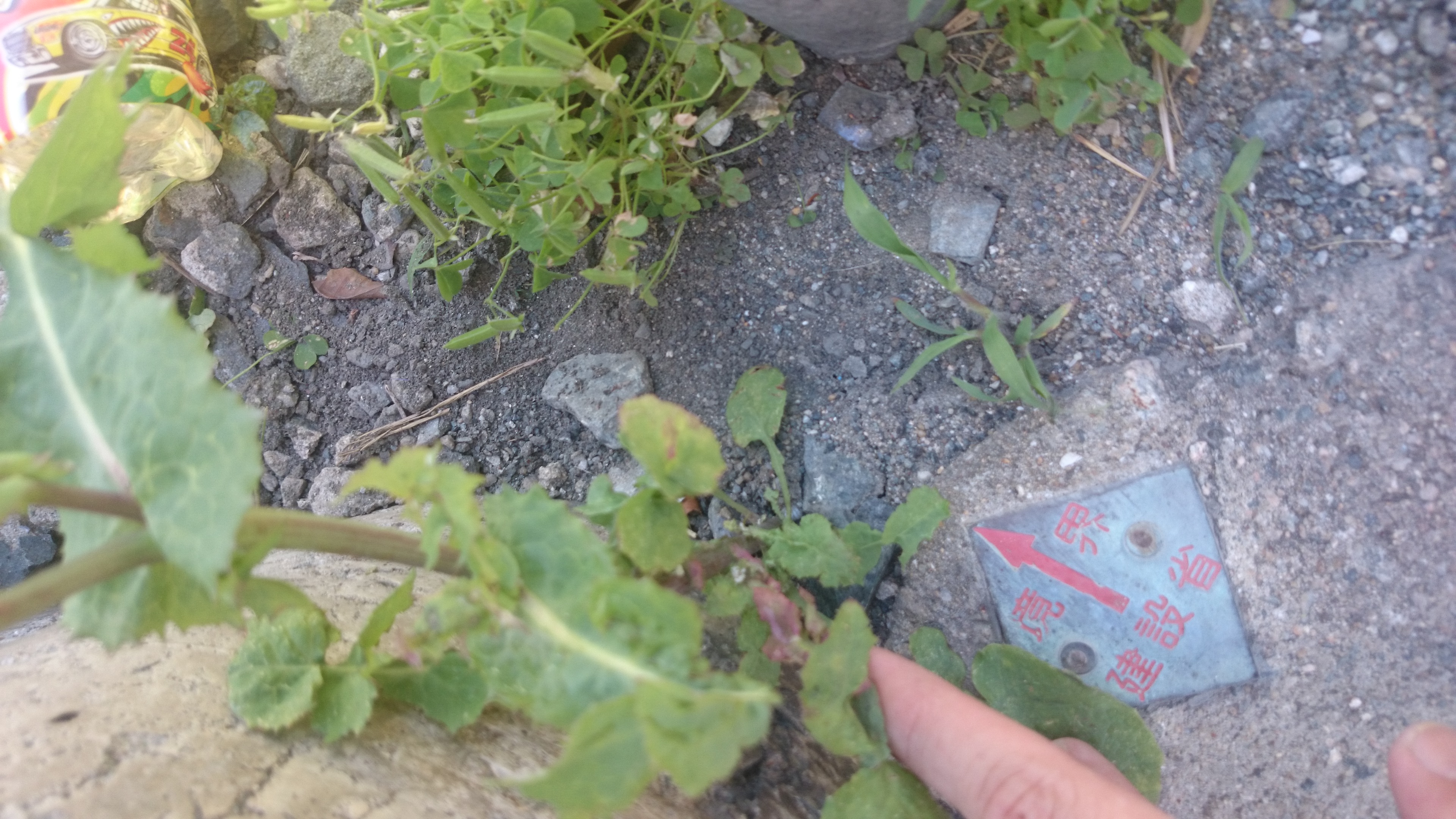 写真は、敷地の境界を探しているところです。(;´∀`)