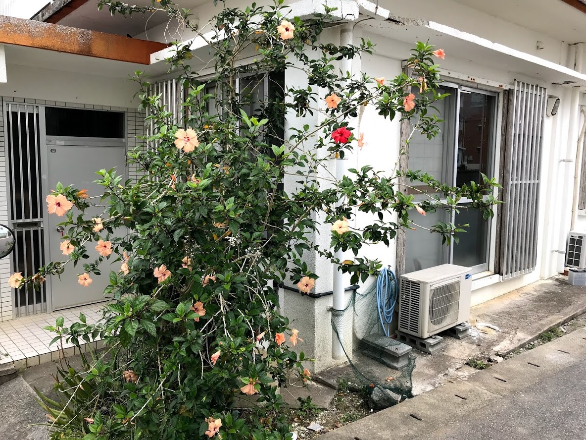 次に、宿舎の庭に咲くハイビスカスがなんと1輪だけ