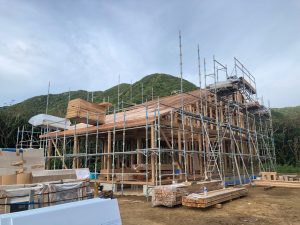 今から上棟開始です。大変暑い中大工さん含め皆さんで頑張りました!