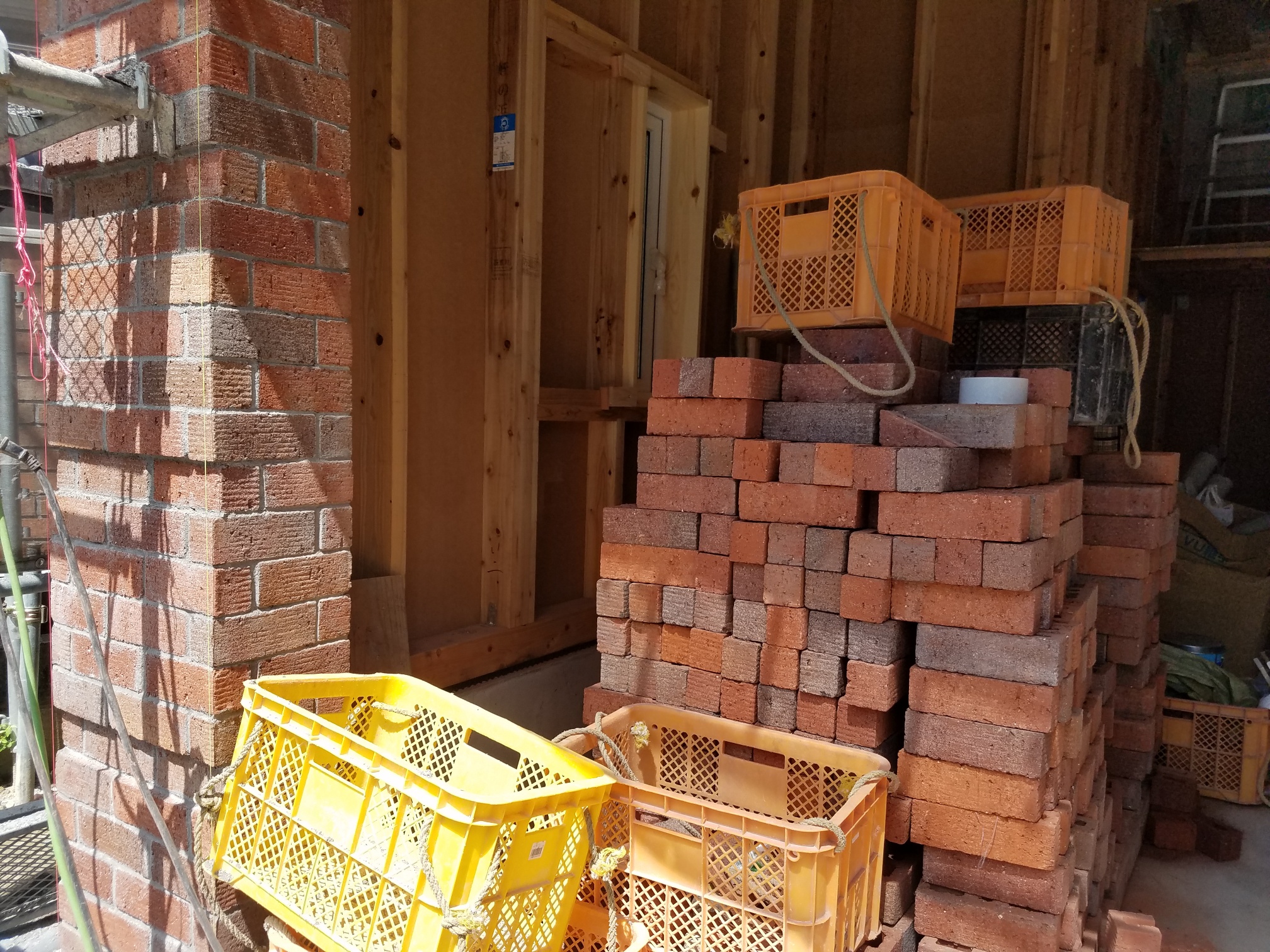 姪浜にて建築中の【2Fリビング&ビルトインガレージ付きの本煉瓦の家】です。