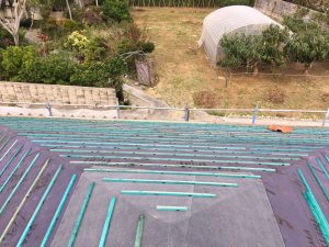 屋根の上から見た、貼られる前の瓦くん達がの整列している瞬間、なんか出番待ちみたいで愛しいですね